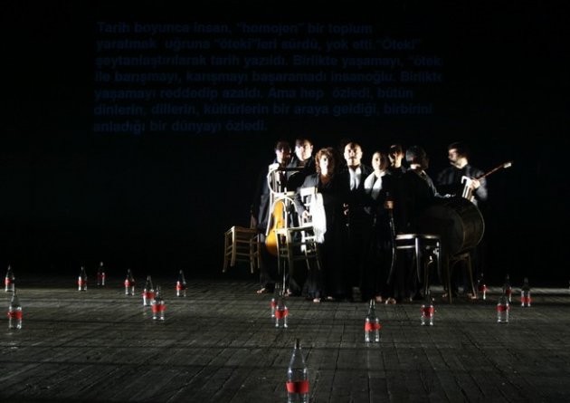 Adı insanlık tarihi kadar eski ‘ashura’; yüzlerce yıldır, Anadolu toprakları üzerinde “homojen” bir toplum yaratma adına oradan oraya savrulan, zorunlu olarak göç ettirilen insanları, sürgüne zorlanan mültecilerin göç yollarını, göç yollarında 12 dilde söylenen şarkılarla anlatıyor. Üç dine ait şarkıların metnini oluşturduğu ‘ashura’, zorunlu göç, kimlik, aidiyet, dil, dilsizlik gibi temalar içerir. Müzisyen, şarkıcı ve oyuncuların birlikte yer aldığı ‘ashura’da Mustafa Avkıran ile Övül Avkıran, yüzlerce yılda oluşan sözlü miras ile resmi tarih bilgisini müzik-tiyatro tanımı içinde yeniden sorguluyor.