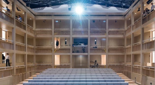 Dönemin tiyatro mimarisi örnek alınarak yapılan bu yeni tiyatro da aynı eski dönem özelliklerine sahip.