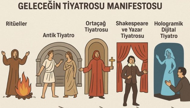 Bu bildirge, tiyatronun geleceğini hibrit sahne pratikleri, yapay zekâ destekli dramaturji, blockchain tabanlı telif sistemleri ve seyirci katılımı üzerinden tartışmakta; Türkiye’deki tiyatrocular için vizyon önerileri sunmaktadır.