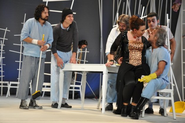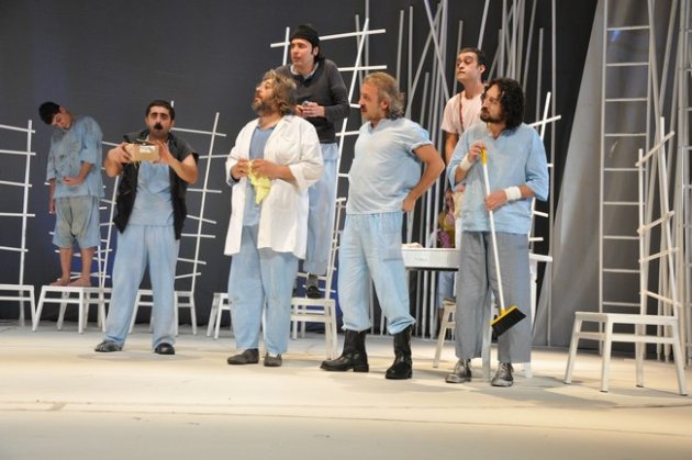 Tüm bunların yanı sıra böylesine sert ve pesimist bir metnin dekor tasarımını yapan Sayın Tayfun Çebi, soyut dekor adı altında beyazlara bürünmüş sonsuzluğu temsil eden objelerle akıl hastanesini sirke çevirmesi nasıl bir çözümlemenin sonucudur? Kronik delilerin insani özellikleri alınarak onları kobay gibi kullanan hastaneyi sempatik göstermeye neden ihtiyaç duyduğunu anlayamadım.