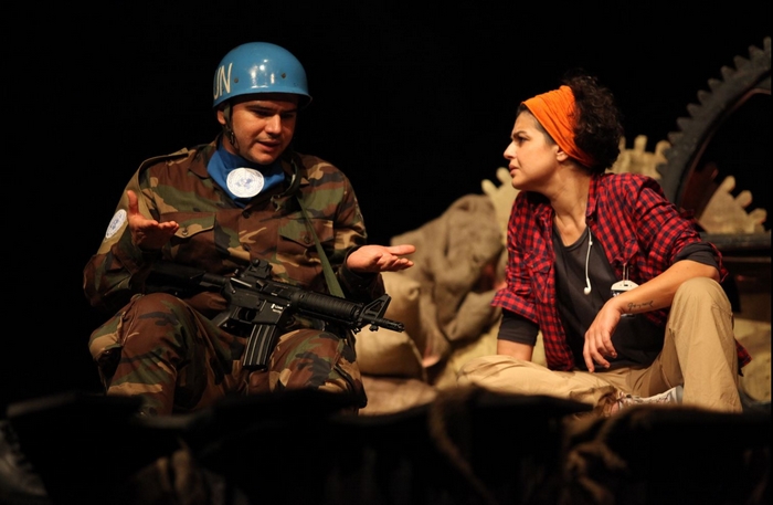 Danis Tanovic’in “Tarafsız Bölge” adlı film senaryosundan oyunlaştırılan İki Arada Bir Yerde adlı oyun Yıldıray Şahinler’in rejisiyle sahneye taşınıyor. “İki Arada Bir Yerde”, savaşın tam orta yerinde “iki taraf” haline gelmiş ya da düşürülmüş “asker-insan’ların” durumunu anlatıyor. Adları yaşam biçimleri, uğruna savaştıkları değerler, hatta beklentileri, birbirinin benzeri olanları ateş altındaki korkuları, tedirginlikleri, öfkeleri oyunda konu ediliyor. Oyunda; Alp Tuğhan Taş, Cengiz Tangör, Ertuğrul Postoğlu, Güzin Alkan, Mehmet Soner Dinç, Murat Coşkuner, Reyhan Karasu, Sefa Öztürk, Yıldıray Şahinler rol alıyor. Oyun; 1-3 Aralık 2016 tarihleri arasında Kadıköy Haldun Taner Sahnesi’nde, 29-30 Aralık 2016 tarihleri arasında Ümraniye Sahnesi’nde.