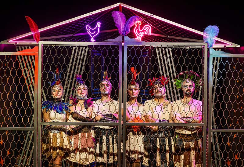 Yıl M.S. 476… Deli olduğuna inanılan bir İmparator... Entrikacı bir İmparatoriçe… Tiyatroya kafayı takmış bir Prenses... Kilometrelerce koşarak önemli bir haber getirse de bir türlü İmparator’u göremeyen bir asker… Tam takır kuru bakır bir hazine… Yeni bir icat... Bir pantolon imalatçısı… Kümese dönmüş bir saray. Ve tavuklar! Her yerde ve her yerde tavuklar.