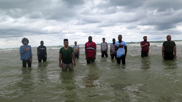 Video, bilinmez bir deniz kıyısında, dalgaların karaya ulaştığı herhangi bir eşikte, dizlerine kadar suda bekleyen birkaç insanın bakışlarını izleyiciyle buluşturur. Ayakları suda, bedenleri karaya dönük, sıkışmış halleriyle sadece karadakine bakarlar. Umut peşinde yahut çaresizlikle çıkılan yollarda verilen yaşam mücadelesi, geride kalanlar ya da yolu tamamlayamayanların hatıralarıyla birlikte yeni bir karanın eşiğinde dururlar. Kabul görmek ya da görmemek, yeni bir yerde yeniden bir yaşam kurmak ve en önemlisi de yeni karanın mevcut yaşayanları tarafından karşılanma süreci ve meydana gelen sorunlar bu bakışlarda saklıdır.